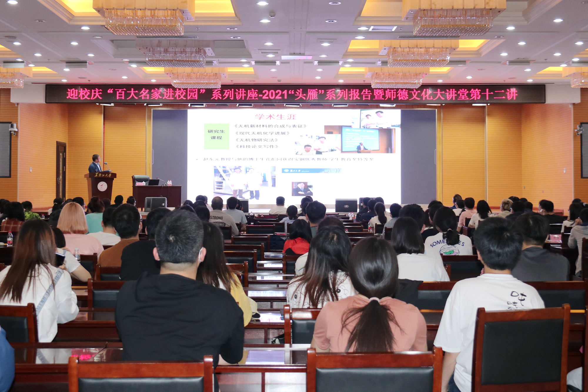 5月20日,必赢在主楼一楼报告厅举办迎校庆“百大名家进校园”系列讲座-2021“头雁”系列报告暨师德文化大讲堂第十二讲。复旦大学化学系教授、中国科学院院士、第三世界科学院院士赵东元担任主讲人。校党委书记王永清、校长付宏刚,党委副书记蒋晶洁、丁宏,副校长张颖春、井立强、李卓,功能无机材料化学教育部重点实验...