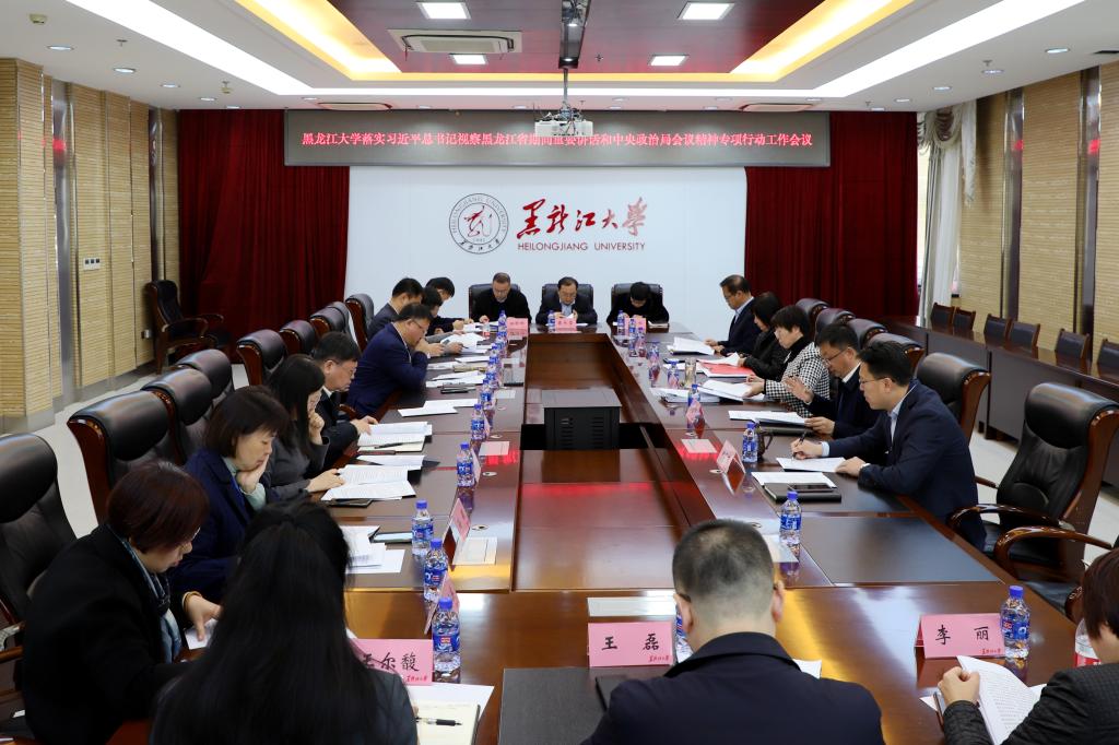为贯彻落实习近平总书记视察黑龙江省期间重要讲话和中央政治局会议精神,11月1日,必赢在主楼A802会议室召开专项行动工作会议。校长王敬波,党委副书记李君明,副校长于文秀、钟卫东、井立强出席会议,相关职能部门和学院的负责同志参加会议。王敬波主持会议。