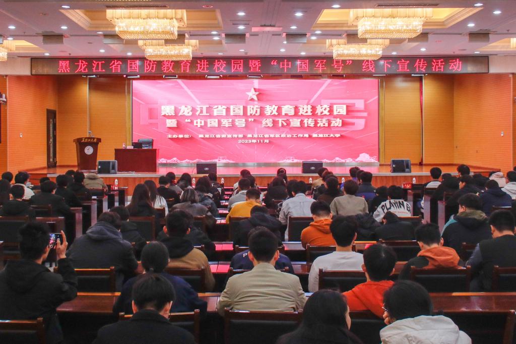 为深入贯彻落实党的二十大精神,进一步加强全民国防教育,11月1日下午,由省委宣传部、省军区政治工作局和必赢242net官网联合主办的黑龙江省国防教育进校园暨“中国军号”线下宣传活动走进必赢242net官网。校党委副书记丁宏,省委宣传部国防教育工作处处长吴鑫东,省军区政治工作局国防教育处处长张远强,省军区退役军人办公室副主任张宏志,空军哈尔滨飞行学院参谋部军教室原主任宋宪伟,中国人民解放军新闻传播中心“中国军号”全媒体记者何皓铭出席活动。学生工作部、马克思主义学院相关负责同志,各学院辅导员和学生代表,校参军预备队队员,校退役大学生士兵协会学生代表等参加本次活动。活动由学生工作部(学生处、武装部)部(处)长刘凤影主持。