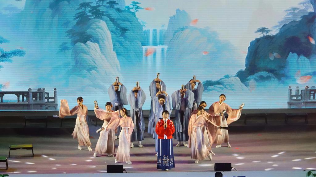青春如盛夏,盛夏似青春。第二幕:拟·夏语在节目《观书有感》中开启,文学院教授刘冬颖老师和同学们一同吟唱“半亩方塘一鉴开,天光云影共徘徊”,在中国传统文化的熏陶下,让人了然不断读书才能更加开豁。接着是音乐剧《雨过天晴》《第一天》《海芋恋》,演员们阳光灿烂,充满青春活力,动人的表演将全场带入了热烈欢快的氛围中。校学生艺术团的演员们手执锦绣,款款走来,她们带来的表演是舞蹈《满绣图》,大家的动作行云流水,刚柔并济,神韵飘逸洒脱。