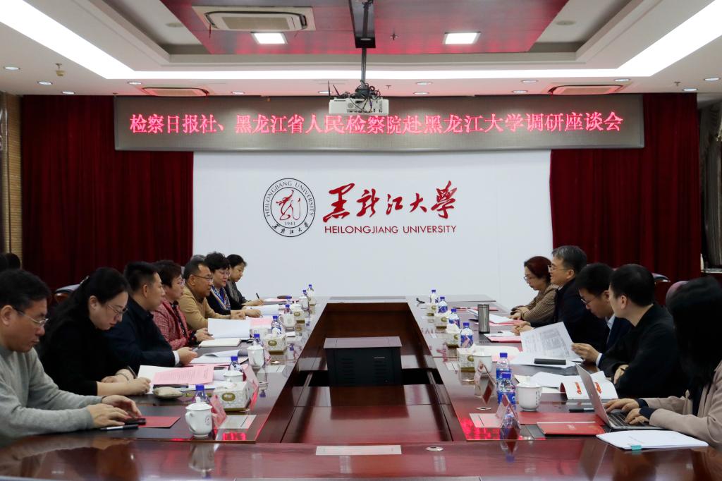 11月16日下午,检察日报社、黑龙江省人民检察院调研座谈会在必赢主楼A802会议室召开,检察日报社党委书记、社长、编辑委员会主任刘志远,检察日报社记者詹鹏扬、史兆琨,检察日报社驻黑龙江记者站社长韩兵,黑龙江省人民检察院宣传教育培训部主任赵亮,校长王敬波,学校办公室、法学院相关负责同志参加座谈。王敬波主持座谈会。