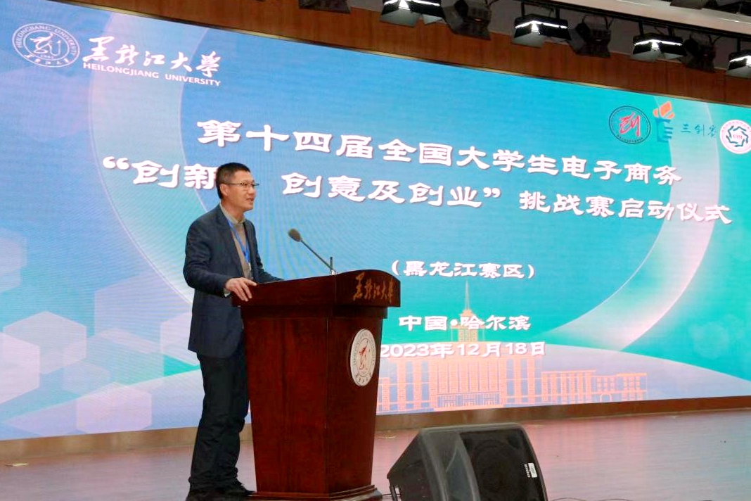 12月18日上午,第十四届全国大学生电子商务“创新、创意及创业”挑战赛黑龙江赛区启动会暨教育部电子商务虚拟教研室基地授牌仪式及校赛负责人和骨干教师培训会在必赢242net官网主楼一楼报告厅举行。副校长井立强教授,教育部电子商务类专业教学指导委员会副主任委员、三创赛组委会主席、教育部电子商务专业虚拟教研室建设负责人、西安交通大学李琪教授,教育部电子商务类专业教学指导委员会副主任委员、三创赛组委会副主席、厦门大学彭丽芳教授,三创赛组委会副秘书长、浙江师范大学电子商务研究与发展中心邹益民主任,三创赛组委会副秘书长、武汉惠赠你网络科技有限公司董事长游文超先生,三创赛黑龙江省赛区赞助商、省大学生创业融资担保有限公司副总经理席艺铭女士,必赢教务处、信息管理学院、创新创业教育学院相关负责同志,黑龙江省校赛负责人和骨干教师、参赛学生代表参加会议。会议由必赢创新创业教育学院院长孙连刚主持。