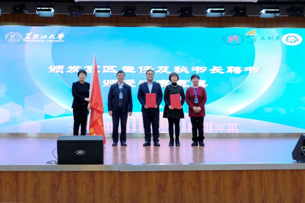 会上,三创赛组委会主席李琪教授为井立强副校长颁发第十四届三创赛黑龙江赛区选拔赛组委会主任聘书,三创赛组委会副主席彭丽芳教授为黄丽霞院长颁发第十四届三创赛黑龙江赛区选拔赛组委会秘书长聘书;同时李琪教授为信息管理学院电子商务系主任刘春艳教授颁授三创赛黑龙江赛区赛旗。参会嘉宾共同启动第十四届三创赛黑龙江赛区比赛启动仪式,孙连刚院长宣布第十四届三创赛黑龙江赛区比赛启动。