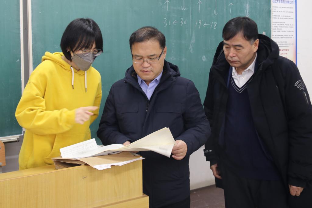 1月4日上午8时,副校长井立强,教务处、相关学院考风考纪巡视组成员对汇文楼考场展开巡视工作。