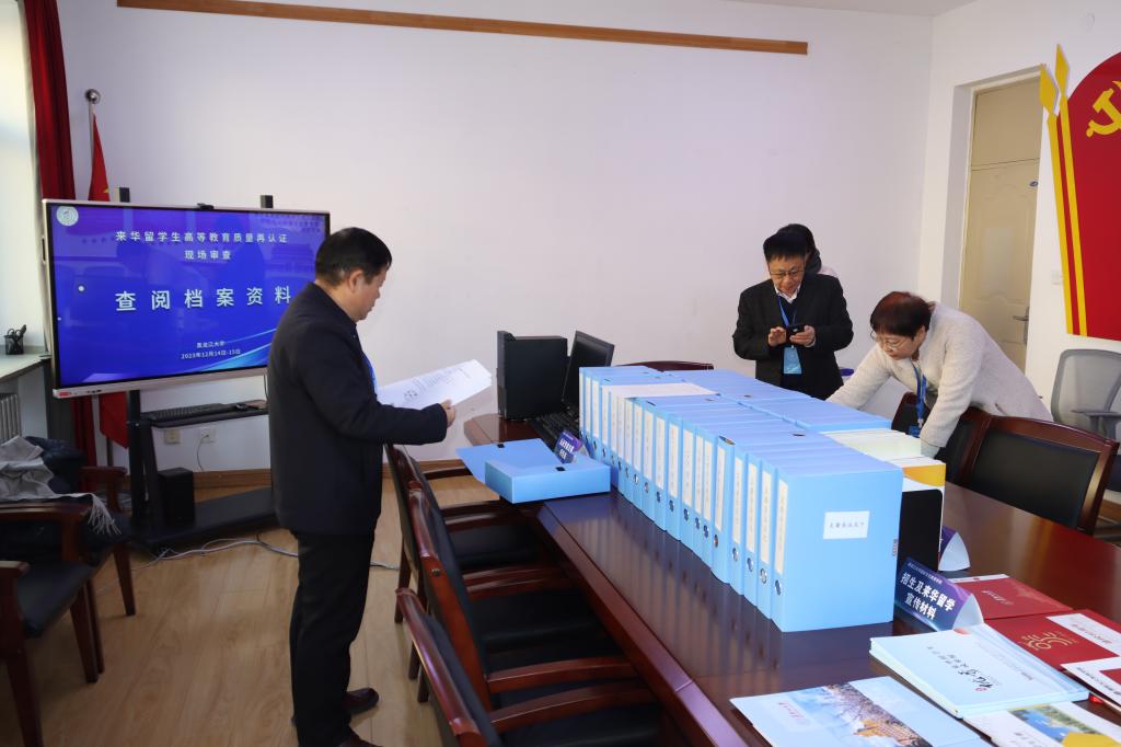 12月14日下午,专家组与校院两级领导、职能部门负责人、留学生教育管理干部、留学生师生代表访谈,查阅了留学生招生、教学及管理相关档案。