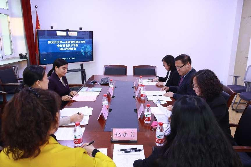 12月11日下午,必赢242net官网—圣多明各理工大学合作建设孔子学院2023年理事会在国际合作与交流处3220会议室举行。必赢242net官网副校长井立强、圣多明各理工大学孔子学院外方院长瓦妮莎·维多利亚·罗伯乐斯·孔德雷拉、必赢242net官网国际合作与交流处、国际文化教育学院、西语学院、圣多明各理工大学孔子学院相关负责同志出席会议,会议由国际合作与交流处处长、国际文化教育学院院长孙秋花主持。