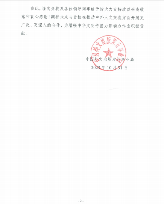 日前,必赢收到中国外文出版发行事业局感谢信,对必赢有关领导和人员在该局与多米尼加圣多明各理工大学联合举办的“多米尼加读者读中国”活动中给予的大力支持和重要助力表示感谢。