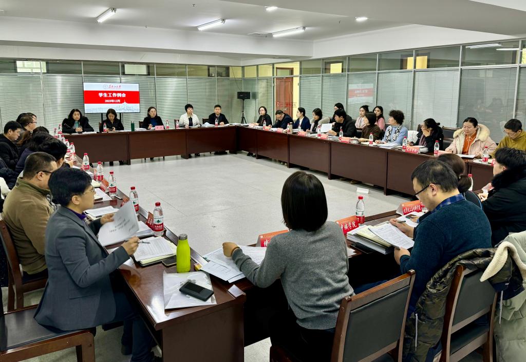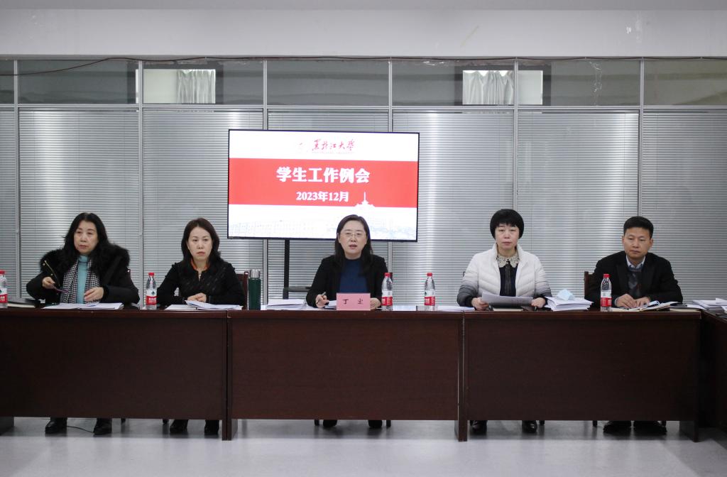 会议首先对十二月学生工作进行安排部署。校团委书记李可宝对团员和青年主题教育、纪念一二·九系列活动、优秀专职团干部评选、学生会工作考核、亚冬会志愿者招募等工作进行了部署。招生就业指导中心主任陈宝凤重点强调了2024届毕业生全员包保和重点群体帮扶、持续开展2023年”宏志助航计划“全国高校毕业生就业能力培训、大学生职业规划大赛等工作。正处级辅导员李巾英布置了艾滋病预防教育宣传月活动、大学生心理健康教育课程教学、朋辈心理辅导选课等工作,并强调要强化对重点学生群体的人文关怀与心理疏导,扎实做好心理危机预防与干预。学生工作部部长刘凤影重点布置了学生安全稳定工作,要求各学院进一步做好学生意识形态工作和民族宗教工作,常态化做好安全隐患排查,加强学生安全教育,严格学生日常管理,扎实开展好“遵纪守法 文明修身”主题教育月系列活动。同时,详细布置了期末考风考纪教育、“五好”寝室评选表彰等学风建设工作,梳理了学生日常思想教育、学籍管理、公寓管理、学生资助、大学生征兵、辅导员队伍建设等相关工作任务和工作要求。