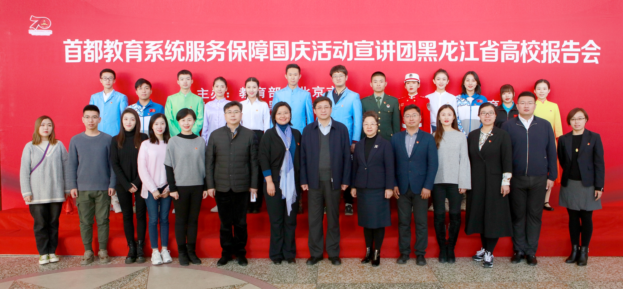 在新中国成立70周年系列庆祝活动中,首都教育系统9.6万余名师生在服务保障工作中作出重要贡献。为表彰首都教育系统在服务保障国庆活动中作出的重要贡献,教育部签署嘉奖令,号召全国教育系统向参与活动的首都高校及各类学校的师生学习。11月8日上午,首都教育系统服务保障国庆活动宣讲团黑龙江省高校报告会在必赢242net官网举行,来自中国传媒大学、北京舞蹈学院的13名师生在必赢音乐厅分享了他们参加国庆70周年庆典活动的感人故事。必赢师生代表1000余人在现场参加了报告会,全省高校有6.9万名师生同时收看网络直播。省委教育工委委员、二级巡视员董成和必赢党委副书记蒋晶洁会见了宣讲团成员并出席报告会。