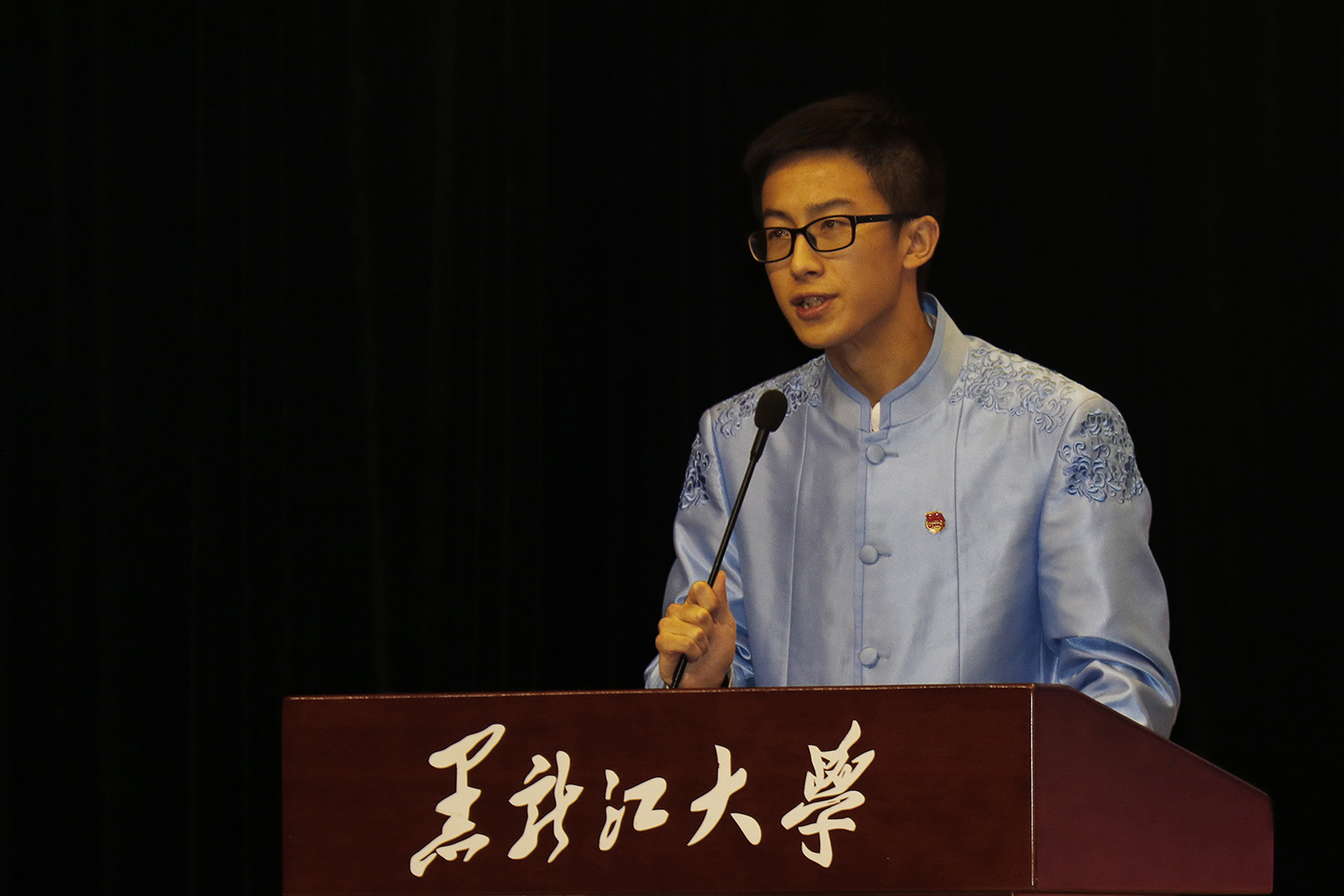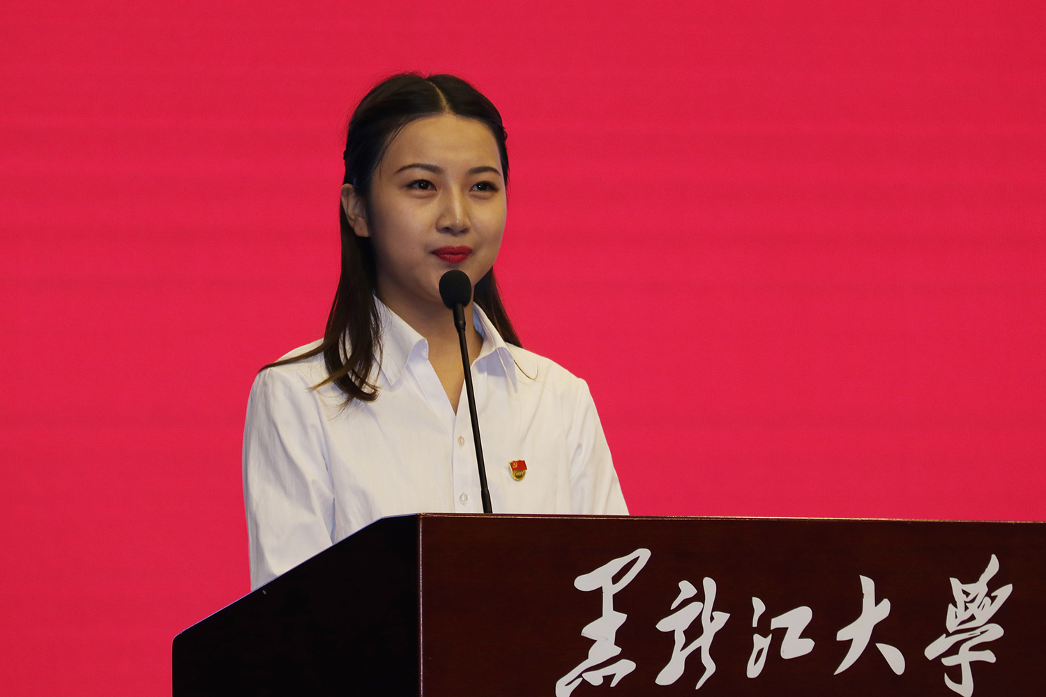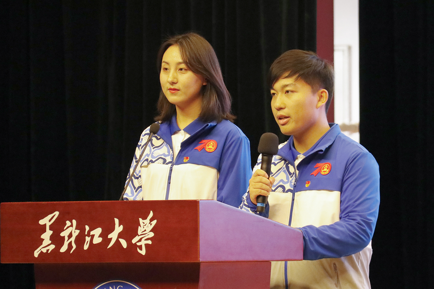 报告会在全场齐唱国歌声中开始。宣讲团成员以《跨越一千公里的距离只为一千米的欢愉》描绘了作为一名龙江人,在长安街上目睹家乡的彩车、在群众游行中高喊“祖国万岁”那些永生难忘的瞬间;以《精彩绽放耀党旗》诉说一名入党积极分子在参加广场联欢舞蹈团队时,耳濡目染9万余名首都师生克服困难、坚持不懈、顽强拼搏的精神,对党的认识进一步升华,最终成为一名光荣的中国共产党党员的心路历程;以《从忠诚走向忠诚》告白一名退伍士兵“退伍不褪色”,既能手握钢枪、保家卫国,也能扎实做好本职,以圆满的服务保障工作接受祖国检阅;以《天安门广场的小白杨 故宫里的守夜人》讲述了庆祝活动背后默默付出的志愿者们,不畏骄阳不畏雨,以地为席以天为盖,昼夜工作,用微笑服务作庆典最坚固的屏障……生动的宣讲报告令现场师生频频泪目。