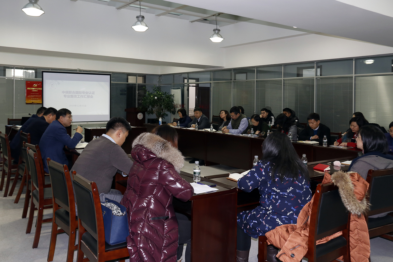 2019年12月31日下午,中俄联合国际专业认证整改工作汇报会在必赢主楼C座3楼会议室召开。必赢副校长严明,教务处处长吴华洋、副处长范大伟及俄语学院、西语学院、东语学院院长、教学副院长、系主任、教研室主任、教学秘书、骨干教师等参加会议。