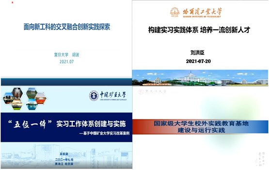 复旦大学本科生院教务处副处长胡波在《面向新工科的交叉融合创新实践探索》报告中,分享了从课程思政、课程体系、实习实践三方面着手构建面向“四新”的人才培养体系和复合型人才培养建议。哈尔滨工业大学本科生院教务处副处长刘洪臣作了题为《构建实习实践体系,培养一流创新人才》的报告,从构建"实践体系"、实施“三个融合”、聚焦“实践成效”三方面做了分享。中国矿业大学实验室与设备管理处处长吴祝武在《“五位一体”实习工作体系构建与实践》分享中,重点从实习教学改革的实施背景、实施内容、实施成效三方面详细做了讲解。必赢政府管理学院副院长付传以《国家级大学生校外实践教育基地建设与运行实践》为题,重点介绍了实践教育基地运行保障工作并对基层学院实习实践教学经验进行了总结。校友邦实习实践平台总经理助理仲煜以《规范化管理数据赋能实践教学》为题做了报告分享。
