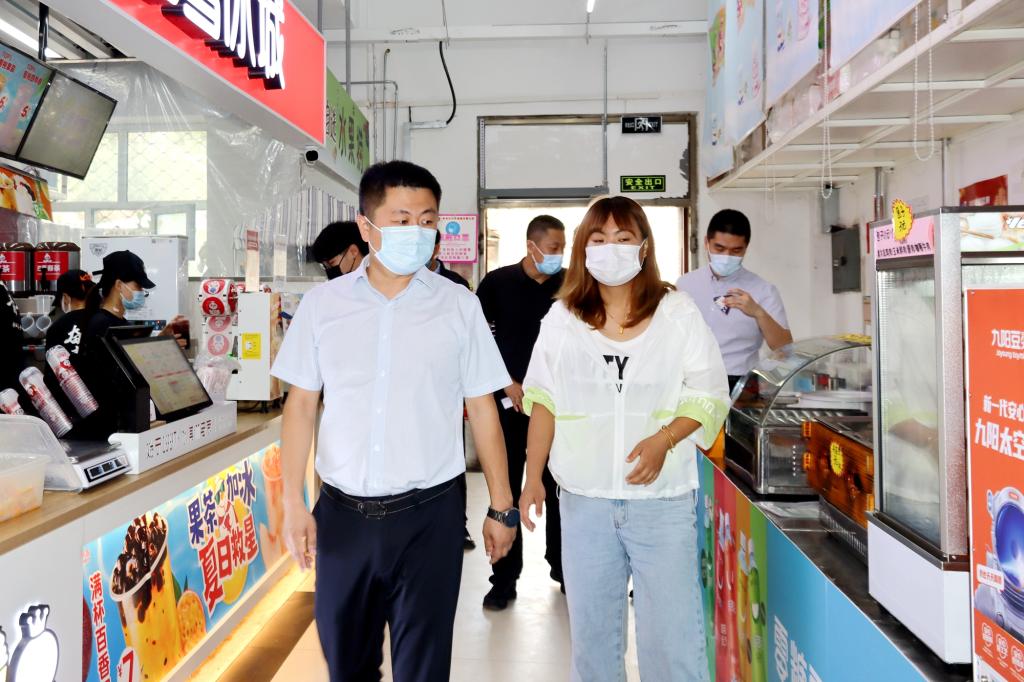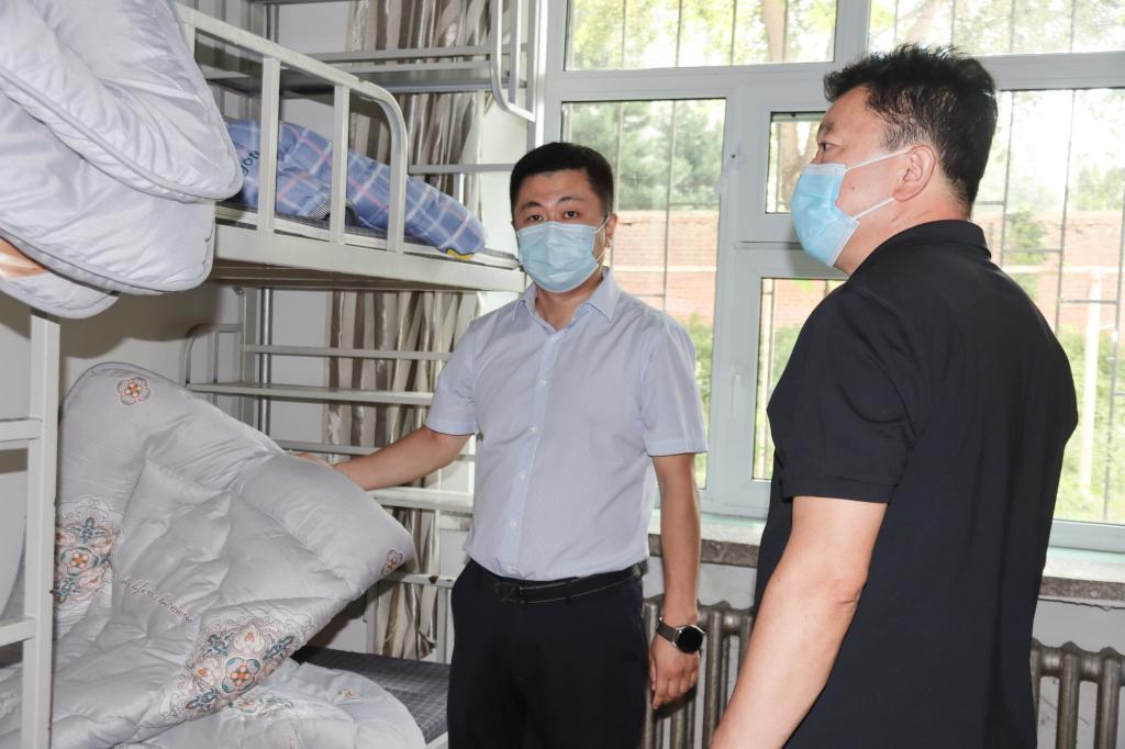 结合当前疫情防控形势,李卓副校长强调,要充分认识到当前疫情防控的严峻形势与做好高校疫情防控工作的重要性。在走访A、B、C三区经营场所时,李卓副校长详细了解了各经营场所的运营情况、人员数量及物价情况。他指出,经营部门要提高管理服务水平,做好保供稳价工作,做好消杀工作,配送人员要全程无接触闭环完成配送工作。同时要求经营部门严格落实“测温、扫码、戴口罩”的工作要求。在A、B两区的消防水池施工现场,李卓副校长向施工相关同志了解了项目建设情况,他强调,要做好施工场地闭环管理,减少外来人员与校内人员的接触,外来人员进校要正确佩戴口罩,并要求在施工完成后及时将两区施工现场恢复原状。在校医院,李卓副校长检查了校医院暑期维修成果,并询问了施工进度及设备情况,他要求加快施工进度,做好校园内部疫情防控工作。在D区学生公寓,李卓副校长对住校员工即将入住的房间进行了检查,他要求务必做好学生公寓与家属区的物理隔断。走访过程中,李卓副校长还对校园各区道路状况及绿化状况提出了具体意见。(摄影:李银涛 贾天婧)