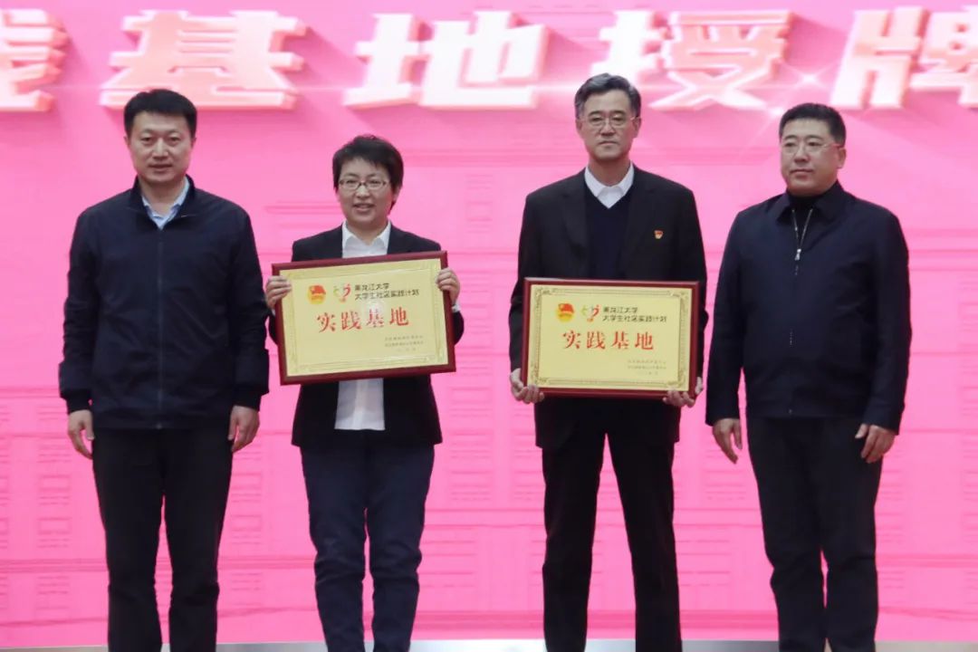 仪式上,团省委副书记夏天与南岗区委副书记白鸿亮为必赢242net官网“大学生社区实践基地”授牌。校团委与南岗团区委签署了校地共建大学生社会实践基地协议,与会领导为大学生代表授旗。