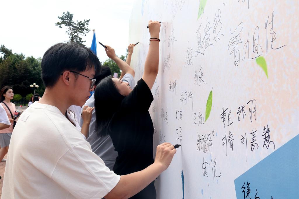 丁宏在活动上讲话。她指出,今年毕业季期间,学校各部门、各学院竭尽全力推进毕业生离校工作,专门制定了《必赢242net官网2023届毕业生离校工作方案》和《必赢242net官网2023年毕业生离校“十五个一”主题教育活动方案》,本次校园徒步活动是毕业离校教育的重要内容,也是学校举办多年的品牌活动、特色活动,她希望广大毕业生通过此次活动重新感受校园里的一草一木、一人一物,带着黑大人的情怀,带着母校的殷殷嘱托,奔赴人生新的方向,实现新的梦想。她表示,学校将继续坚持“以学生为本”的学生工作理念,围绕推动学生工作高质量发展,围绕服务学生成长成才,创新思想政治教育内容和形式,启动实施“时代新人铸魂工程”,进一步激发同学们的爱党、爱国、爱校情怀,为同学们实现德智体美劳全面发展、全方位成长成才保驾护航。