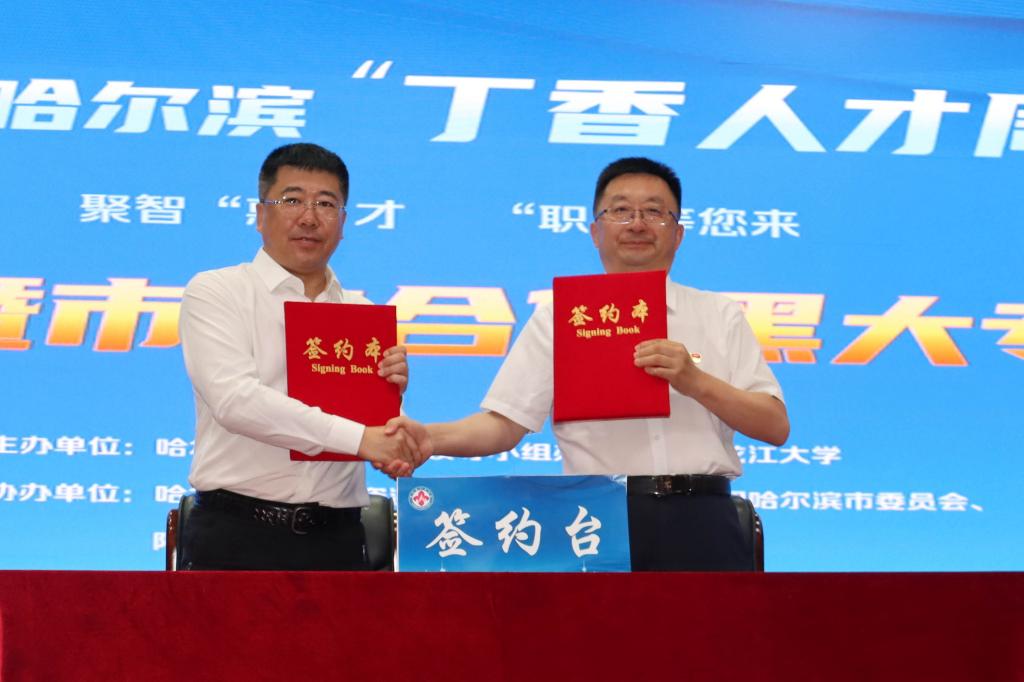 活动现场,市人社局、团市委,阿城区、通河县、方正县等单位就人才就业信息共享战略合作、推进金源文化发展、现代农业产学研建设、电子信息商务合作等方面与必赢现场签署了项目合作协议;同时,共青团哈尔滨市委动员企业捐赠10万元,在必赢设立奖学金。