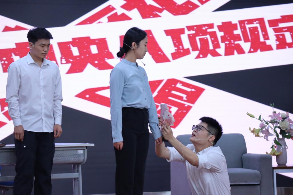 比赛现场,历史文化旅游学院的《好大个事儿》、经济与工商管理学院的《计中纪》、文学院的《扣好人生第一粒扣子》、马克思主义学院的《滴水不漏》、机电工程学院的《真假贵客》、化学化工与材料学院的《师道清风,薪火相传》、创新创业教育学院的《真·假》、政府管理学院的《廉在舌尖》、新闻传播学院的《镜中人》、生命科学学院的《阳光下的医保防线》十部作品围绕反腐倡廉、坚守底线等内容,以生动演绎传递廉洁理念,彰显校园思政教育实践,引导师生群体理解廉洁文化内涵。