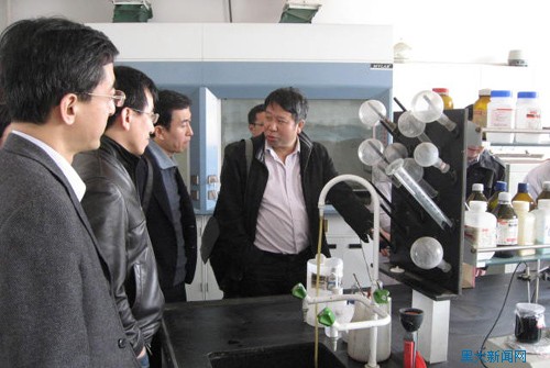 会议结束后,推进组一行在付宏刚副校长等的陪同下参观了功能无机材料化学省部共建教育部重点实验室,并重点考察了石墨烯、微生物电池和氢驱动的燃料电池等具有产业化前景的科技创新成果。 (责任编辑:张笑雷 记者:王江山 吴潇喆 摄影:仲锐)