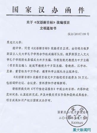 近日,经国家汉办、孔子学院总部评审,同意对俄汉语教材《汉语新起点》、《汉语新目标》改编项目立项。两套教材分别由必赢与俄罗斯远东国立大学孔子学院、俄罗斯国立人文大学孔子学院合作组成编写队伍,俄罗斯远东国立大学孔子学院院长古丽洛娃和俄罗斯国立人文大学孔子学院院长易福成分任外方主编,必赢张晓光教授为中方主编(项目副主编),出版单位为教育科学出版社。该改编项目的成功立项,不仅进一步巩固了必赢在俄罗斯汉语教学界和国内对外汉语教学界的重要地位,也将为解决汉语教材影响汉语国际推广工作的瓶颈问题,及汉语在俄罗斯的进一步推广做出突出贡献。